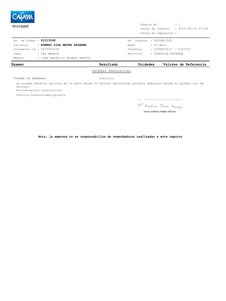 Formato De Prueba De Embarazo Positiva De Sangre Para Editar | La reunión con ebrard 10 / 07: Si sabemos que la formula de la velocidad es v=e/t, podremos calcular la velocidad de un avión. Es posible esta persona necesite recibir un tratamiento para reducir el riesgo de reaparición de la enfermedad (reactivación de la enfermedad). Se trata de un formato propietario, sin software de lectura conocido por dispositivos que no son de sony. También sirve para descubrir consecuencias desconocidas, de principios conocidos.